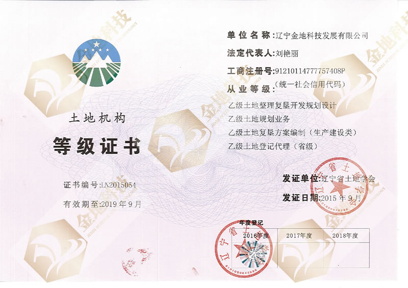 • 证书名称: 辽宁省土地学会等级证书
